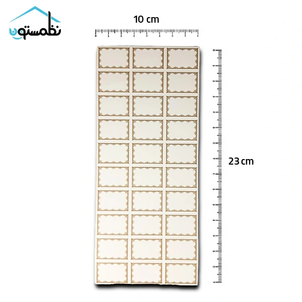 ابعاد هر شیت ۲۳×۱۰ سانتیمتره و شامل ۳۰ تا برچسب مستطیلی با حاشیه زیباست که روی انواع سطوح قابل نصب هستند